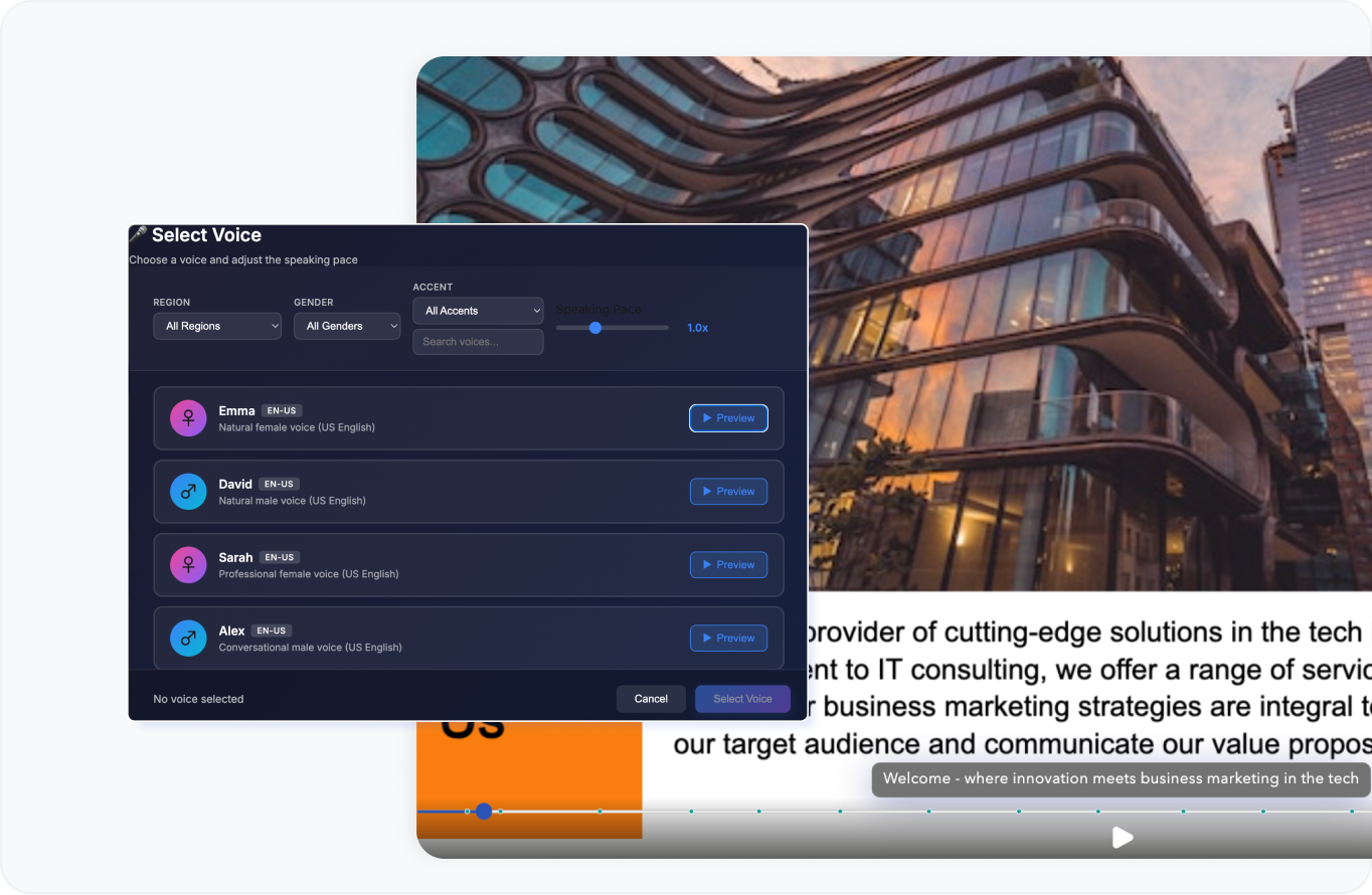 Upload your existing materials, or start from scratch with Flipick’s intuitive video editor. Easily convert documents, presentations, and PDFs into engaging video content.
